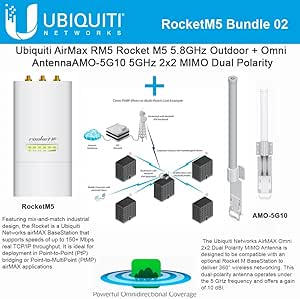Amazon Com Ubiquiti Rocketm5 Outdoor Basestation Point To Multipoint With Omni Dual Antenna Amo 5g10 10dbi Electronics